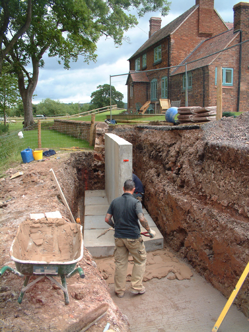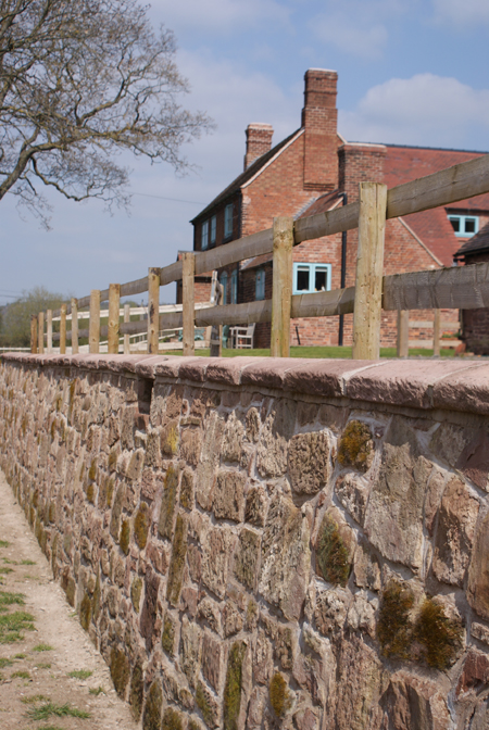 Construction of an attractive dressed sandstone faced retaining wall using reclaimed sandstone.