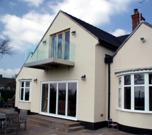 Working for a private client ATEC Construction Limited successfully transformed this existing bungalow nearly doubling the floor space. New first floor rooms were formed by carefully adapting the existing structure with a new staircase installed to provide access. A cantilevered glass balcony installed on the rear elevation makes the most of far reaching views.